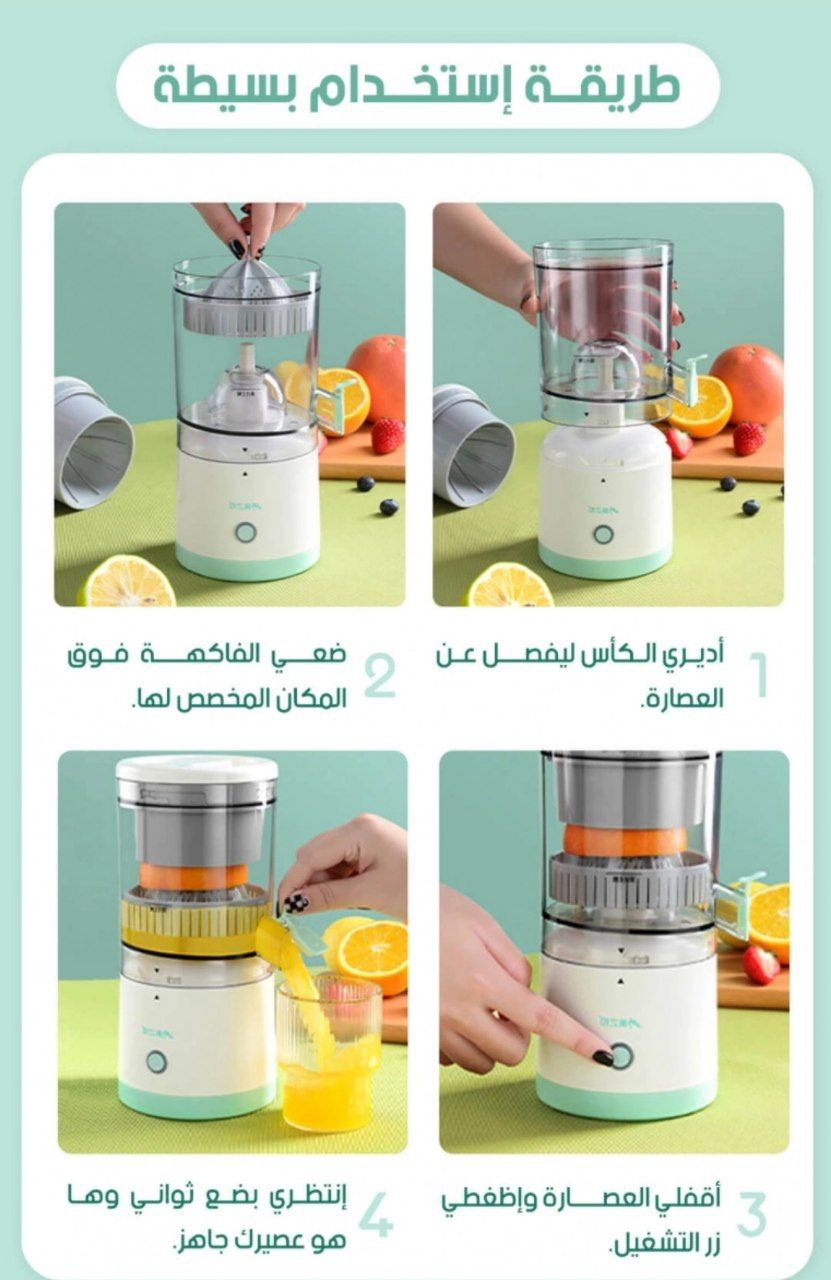 - عصارة كهربائية مدمجة وسهلة الحمل، متعددة الأغراض يمكن استخدامها في عصر البرتقال والتفاح والرمان والكمثرى وغيرها من الفواكه.