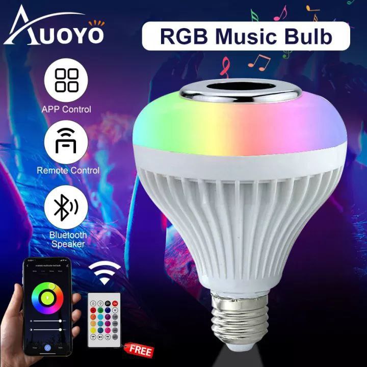 لمبة إضاءة LED ذكية 12 وات ، RGB ، مكبر صوت لاسلكي ، بلوتوث ، صوت ، تشغيل الموسيقى ، مصباح قابل للتعتيم جهاز تحكم عن بعد